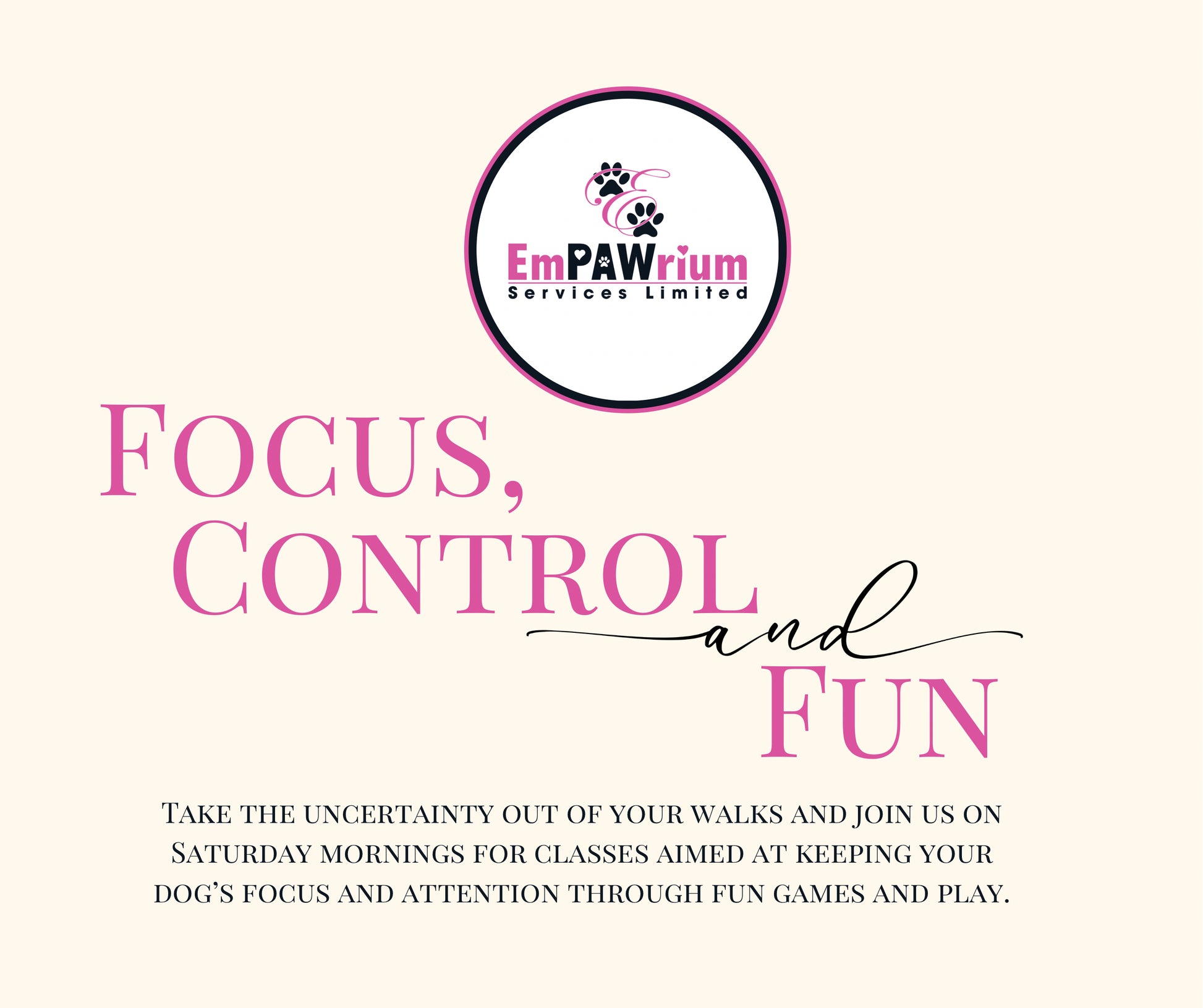 Bring your dog along and join us on Saturday mornings and learn how to take the uncertainty out of your walks and make them more enjoyable for you and your dog.